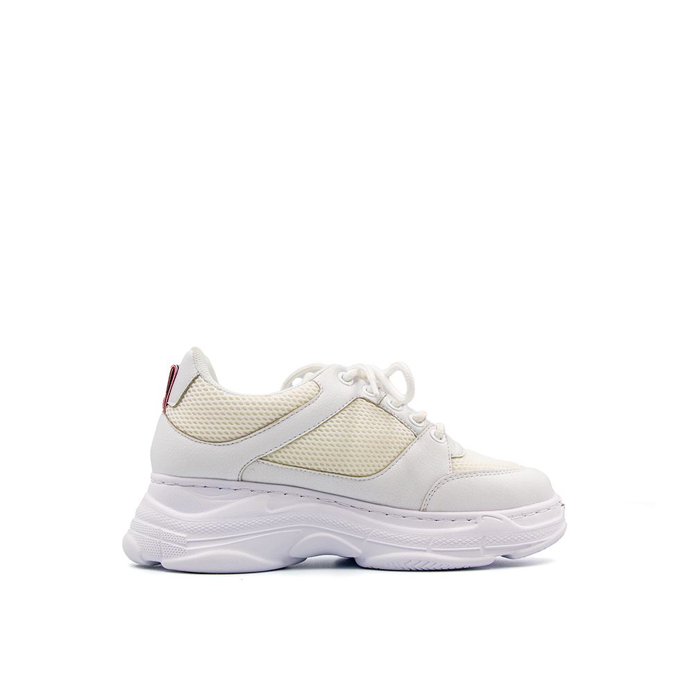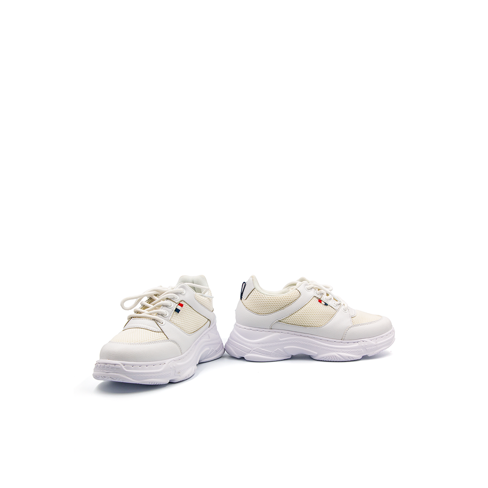 Đế giày - lựa chọn chất liệu Phylon làm nên đế giày thể thao cho các chị em. Vì tính chất nổi bật của vật liệu này là trọng lượng siêu nhẹ (nặng chỉ 300g/chiếc) và độ đàn hồi cao. Nhờ đó, phần lớn khách hàng sử dụng sản phẩm ngay từ lần đầu tiên đều có cảm giác đôi chân “nhẹ như bay”, bước đi thoải mái và thỏa thích vận động ở mọi tư thế theo cách riêng mà không lo đau mỏi chân. - Mặt đế thiết kế thêm những rãnh chống trượt, bố trí dày đặc nhằm tăng độ ma sát. Qua đó giúp người mang vận động thoải mái, bước đi vững chắc và bảo đảm an toàn tối đa, nhất là khi di chuyển trên những địa hình trơn nhẵn hoặc thời tiết ẩm ướt. Thân giày - Thân giày áp dụng công nghệ đan 2 sợi độc đáo. Nhờ vậy, sản phẩm vô cùng nhẹ và thoáng, mang lại cảm giác thoải mái nhất có thể cho người sử dụng. Không những vậy, công nghệ đan 2 sợi còn bảo đảm độ bền chặt của từng chi tiết như cổ giày, quai giày, dây giày… giữ đúng form dáng lâu dài, ít biến dạng hoặc giãn sau một thời gian sử dụng. - Bên cạnh đó, thiết kế thân giày được cải tiến mạnh mẽ bằng chất liệu vải canva, bảo đảm cảm giác thoải mái nhất có thể và hạn chế nóng bức, bí bách nếu phải mang giày trong thời gian dài. -