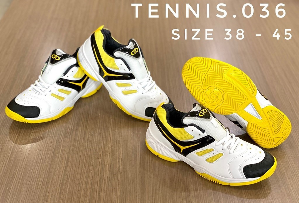 Thân giày: Da tổng hợp mềm mại và bền Đế giày: Cao su dẻo dai, có rãnh sâu chống trơn trượt Thiết kế gọn nhẹ, ôm chân Giầy tennis mã 036 là người anh em