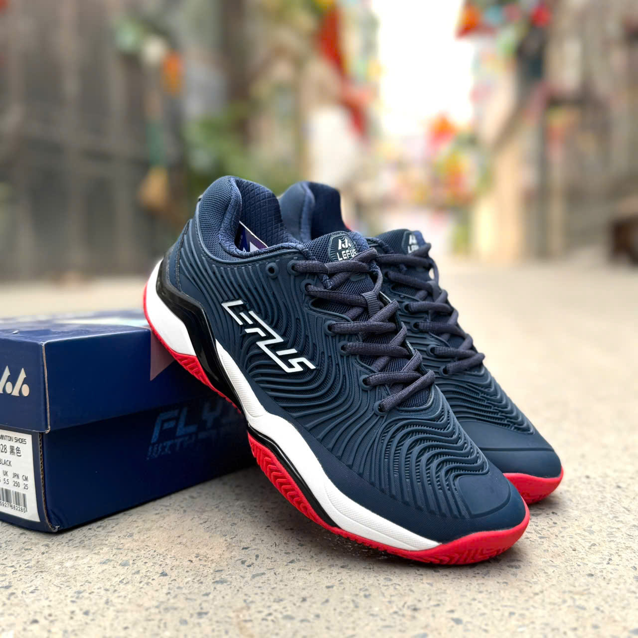 Thông tin chi tiết giày Pickleball Lefus L031 • Màu sắc: Đen Đỏ/ Xanh Cam/ Trắng Xanh • Thân giày/ Upper: Da PU, vải Mesh. • Đế giữa/ Midsole: EVA đàn hồi cao, TPU chống