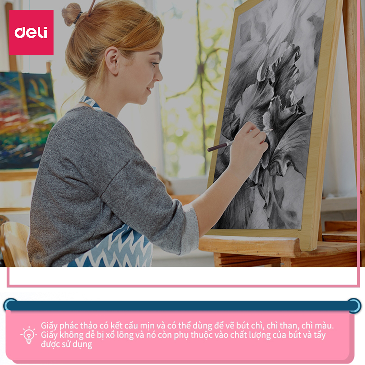 ️Giấy vẽ được sản xuất độc quyền bởi nhà Deli, dành riêng cho người yêu thích hội họa từ cơ bản đến nâng cao.