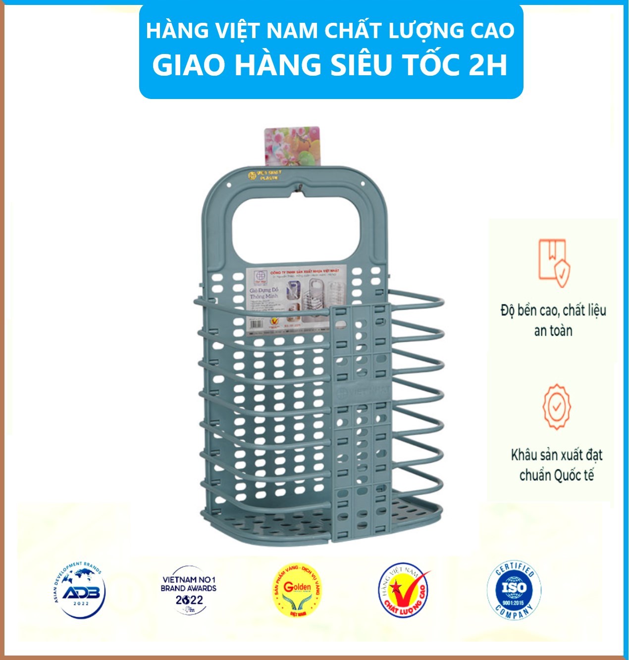- Giỏ treo gấp gọn đựng đồ đa năng để quần áo giặt là được làm từ chất liệu Plastic bóng cao cấp, bền đẹp, không mùi và có khả năng chịu được nhiệt độ