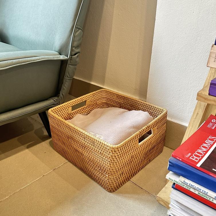 Mua tại Tiktok❁ Giỏ Mây Guột ONGTRE Hình Vuông Đựng Đồ Đa Năng, Vật Dụng Trong Nhà Tiện Lợi