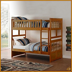 Giường tầng xuất khẩu Exeter có kích thước lọt lòng giường trên/dưới là 100x193 cm / 140x193 cm, phủ bì 206x146x165 cm. Khoảng cách giữa 2 tầng là 93 cm, cầu thang có thể đổi