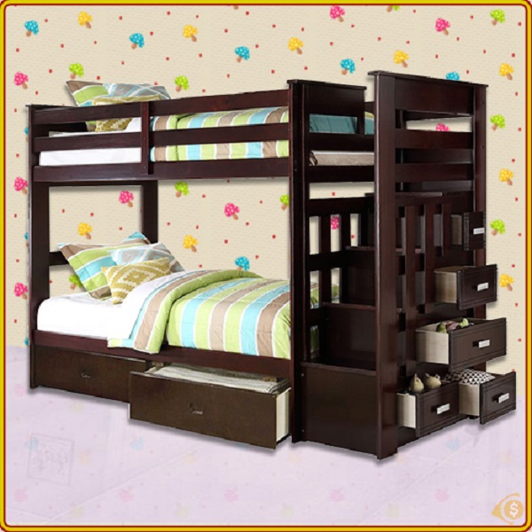 giường gỗ 2 tầng có nhiều ngăn kéo cho bé