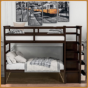 Thông tin sản phẩm: Sản phẩm chỉ bao gồm giường 2 tầng và cầu thang, không kèm các phụ kiện khác. - Chất liệu gỗ thông lâu năm nhập khẩu Canada bền bỉ, an toàn