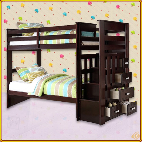 giường gỗ 2 tầng có nhiều ngăn kéo cho bé