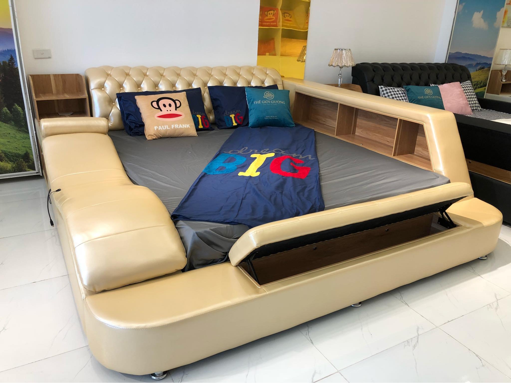 Mua tại TiktokHÀNG TẠI XƯỞNG GIÁ CẢ HỢP LÝ Giường ngủ cao cấp có thành massage, thành hộc sách và hộc tiện ích, lọt lòng nệm 1m6 x 2m hoặc 1m8 x 2m. phủ bì 2m25 x 2m65 NHẬN HÀNG ĐẶT THEO YÊU CẦU . 1m62m 1m82m