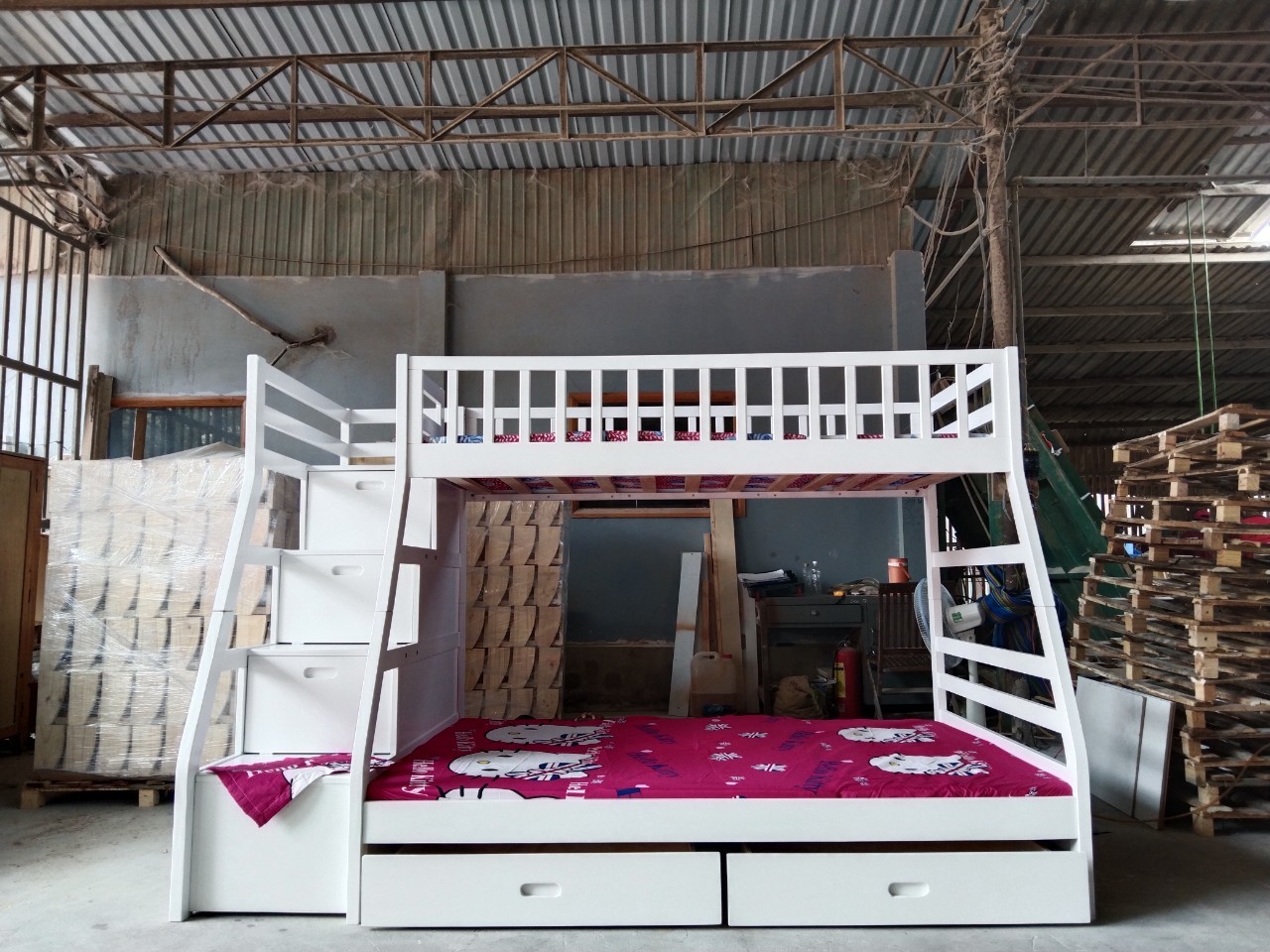 Giường 2 Tầng Unit Có Hộc Kéo (Hai Tầng Đều Rộng 1m2) - Chất liệu Chính: Gỗ thông Newzealand - Màu sắc: Màu Nâu, Trắng, Vàng Tự Nhiên - Thang Giường: Sử Dụng 10 Thang