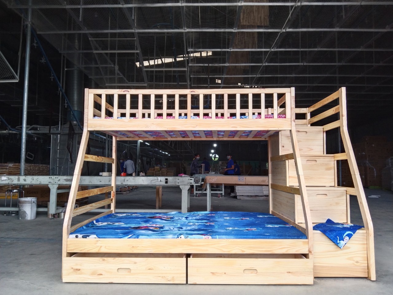 Thông tin sản phẩm: Sản phẩm chỉ bao gồm giường 2 tầng và cầu thang, không kèm các phụ kiện khác. - Chất liệu gỗ thông lâu năm nhập khẩu Canada bền bỉ, an toàn
