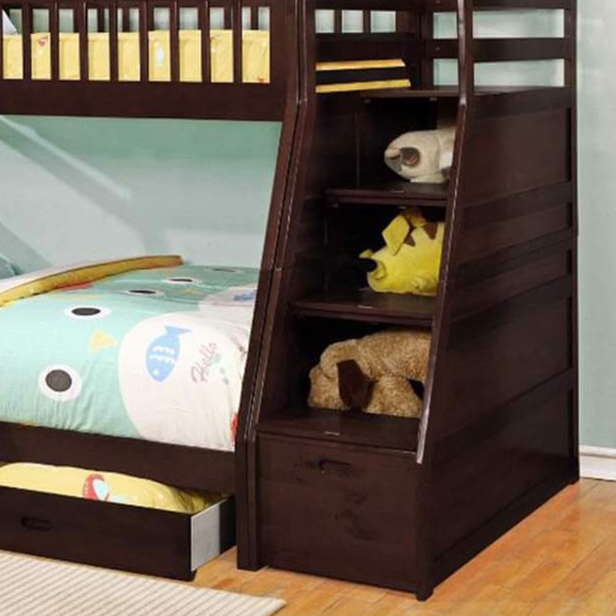 • Cầu thang chắc chắn với các bậc thang có kích thước tương đối lớn, đảm bảo an toàn cho Bé khi di chuyển. Giường tầng trẻ em cao là một sản phẩm thiết thực cho các gia đình có con nhỏ. Cùng với ưu điểm tiết kiệm không gian.