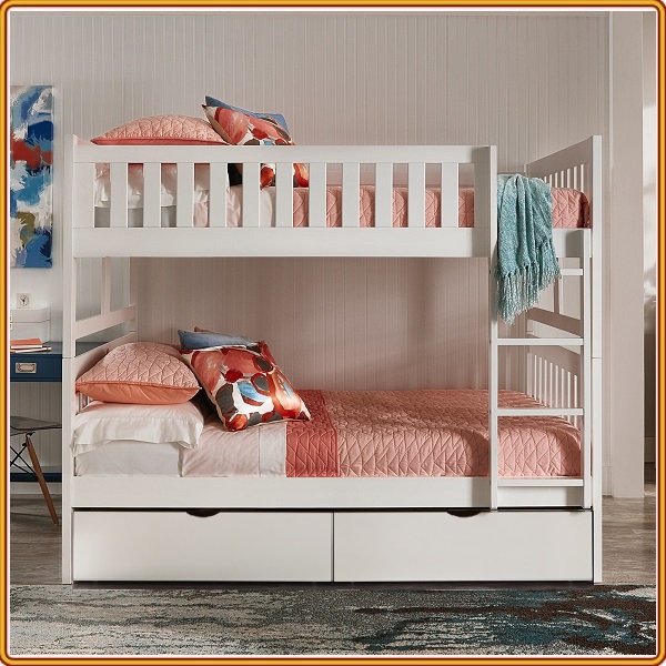 Giường 2 tầng xuất khẩu Unit (có hộc kéo) trắng | Nội Thất KAYA