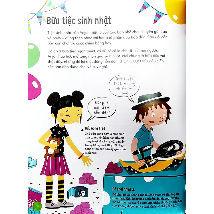 Tiệc sinh nhật của Anjali thật là vui! Nhưng khi bữa tiệc kết thúc, những gì còn lại là la liệt nào thức ăn thừa, nào giấy gói đồ, nào vỏ bóng bay, nào đồ chơi nhự Ta biết phải làm gì với núi rác này đây?
