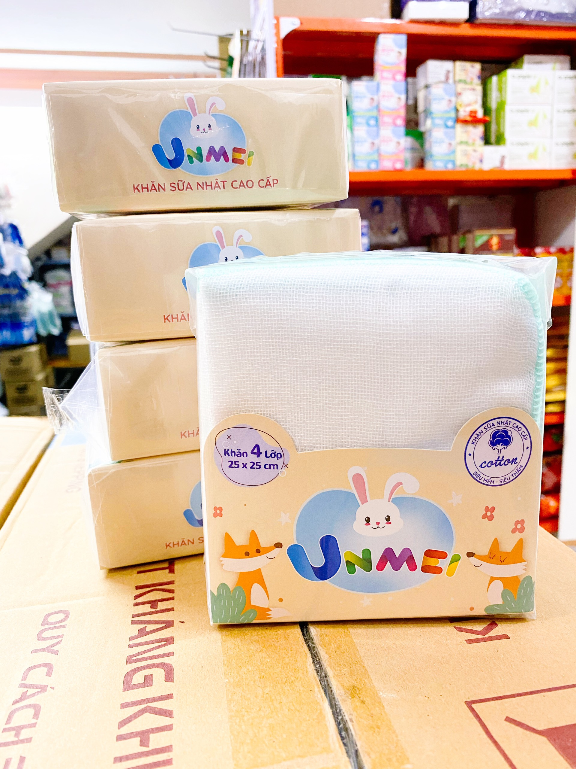 ✨Gói 50 Khăn sữa vải gạc Unmei Dày 4 lớp 25x25cm 100% cotton (Đồ dùng vệ sinh cho bé)