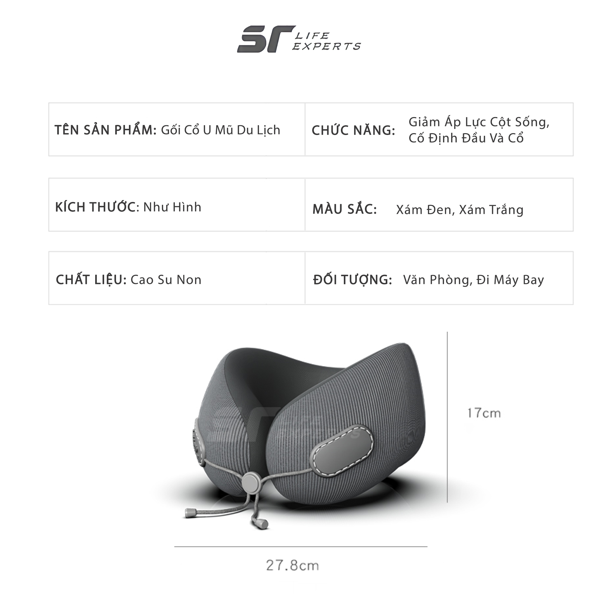 Gối tựa cổ, gối du lịch, gối chữ U công thái học, massage cổ vai gáy, gối văn phòng Lifxy TravelNest