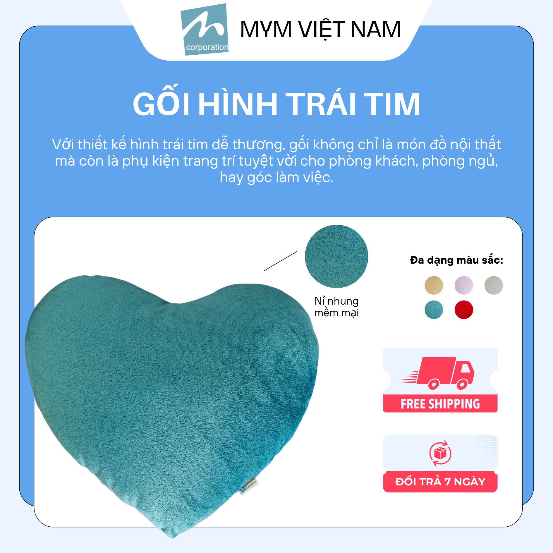 ối trang trí hình trái tim với kích thước là 40 x 50cm được thiết kế với kiểu dáng 3D. Sản phẩm là vật dùng để trang trí, tạo không gian sang trọng cho sofa, giường ngủ