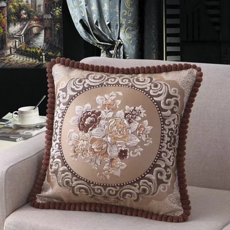 Gối tựa lưng tây âu phong cách và họa tiết hoa thêu sang trọng một điểm nhấn tuyệt vời cho sofa phòng khách Vỏ gối được làm từ vải gấm lụa chất lượng cao, hình