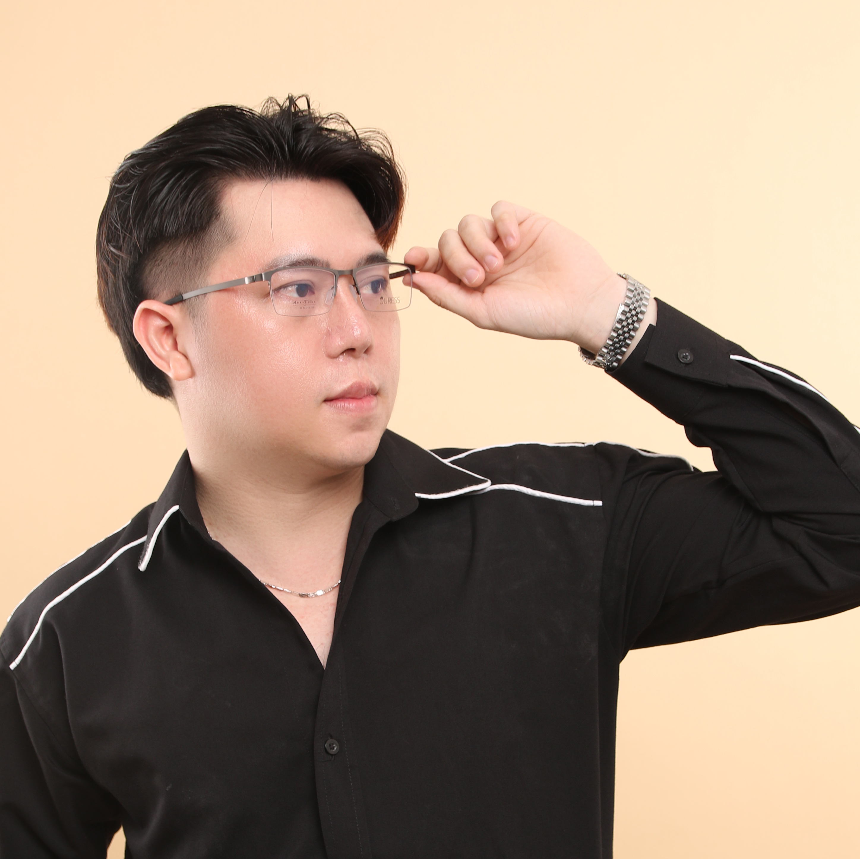 GỌNG KÍNH TITANIUM NỬA KHUNG ( XẺ CƯỚC) CAO CẤP THỜI TRANG NAM