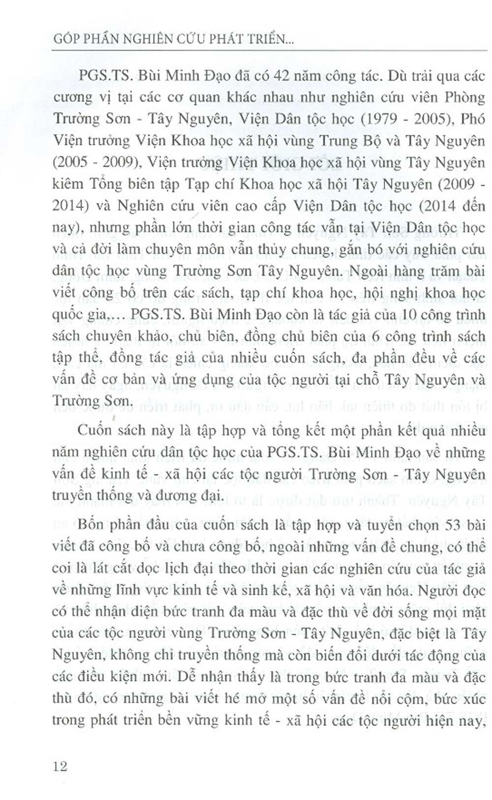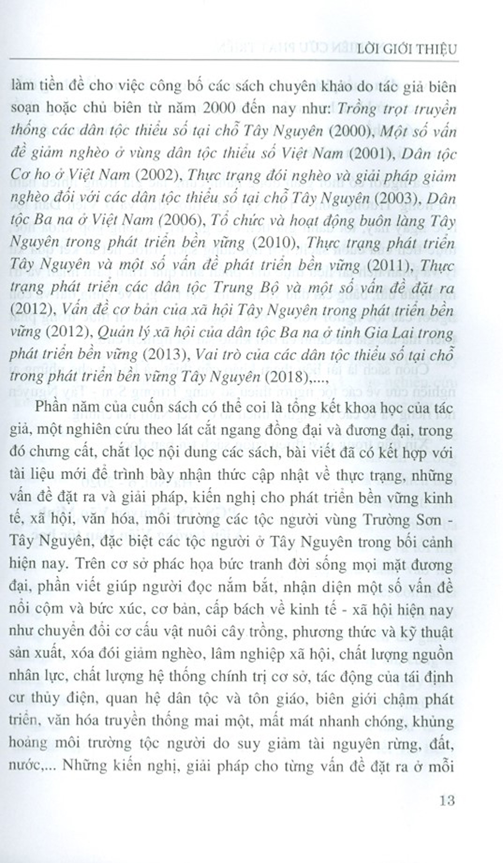 Mua tại TiktokSách là những nghiên cứu về những lĩnh vực kinh tế và sinh kế, xã hội và văn hóa, cũng như đời sống về mọi mặt của các tộc người vùng Trường Sơn - Tây Nguyên, gồm 5 phần: Một số vấn đề chung; Một số vấn đề về kinh tế và sinh kế; Một số vấn đề về xã hội; Một số vấn đề về văn hóa; Thực trạng phát triển và một số vấn đề phát triển bền vững các dân tộc thiểu số tại chỗ vùng Trường Sơn Tây Nguyên.