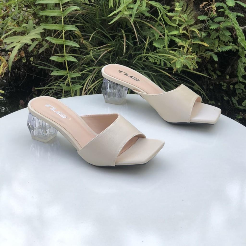 guốc 5 phân đế trong quai đính đá mũi vuông