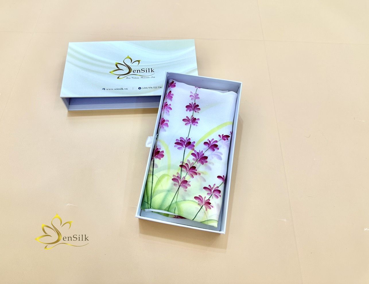 SenSilk – Lụa Tơ Tằm Thuần Việt kết hợp hài hoà giữa Lụa tơ tằm Bảo Lộc cao cấp với công nghệ in kỹ thuật số hiện đại tạo nên những chiếc khăn lụa in kỹ