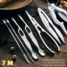 Mua tại TiktokHÀNG CAO CẤP Bộ hộp 7 Dụng Cụ Ăn Cua Ghẹ Sò Ngao Tôm Hùm Hải Sản Đa Chức Năng inox 304