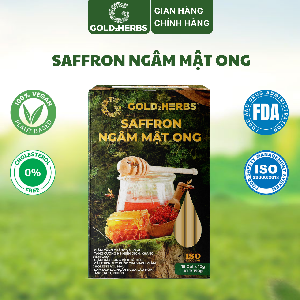 ✨Hàng chính hãng - Saffron ngâm mật ong GoldzHerbs, 100% mật ong nguyên chất – Hũ 300g/ Hộp 15 gói x 10g