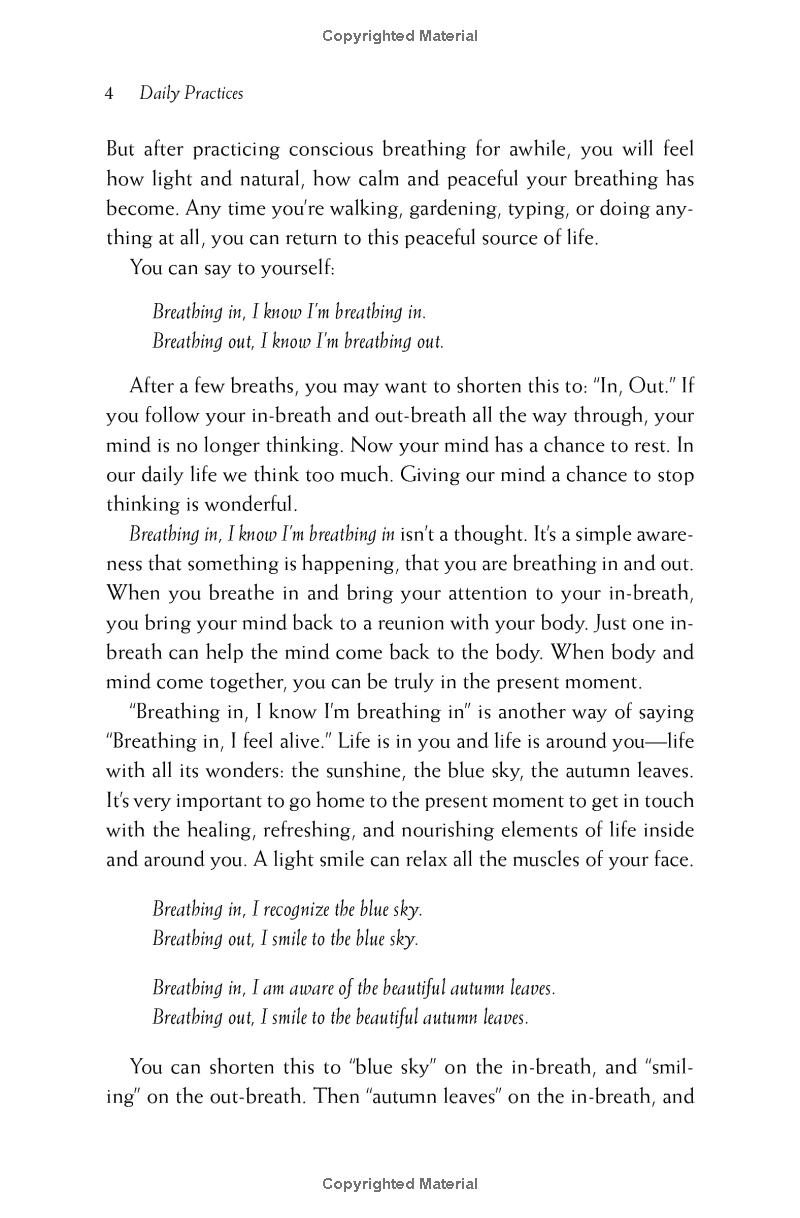 Mua tại TiktokThich Nhat Hanh's central teaching is that, through mindfulness, we can learn to live in the present moment instead of in the past. This book is structured to introduce those new to Buddhist teachings and those more experienced practitioners that happiness is the quintessential resource of mindfulness practices.