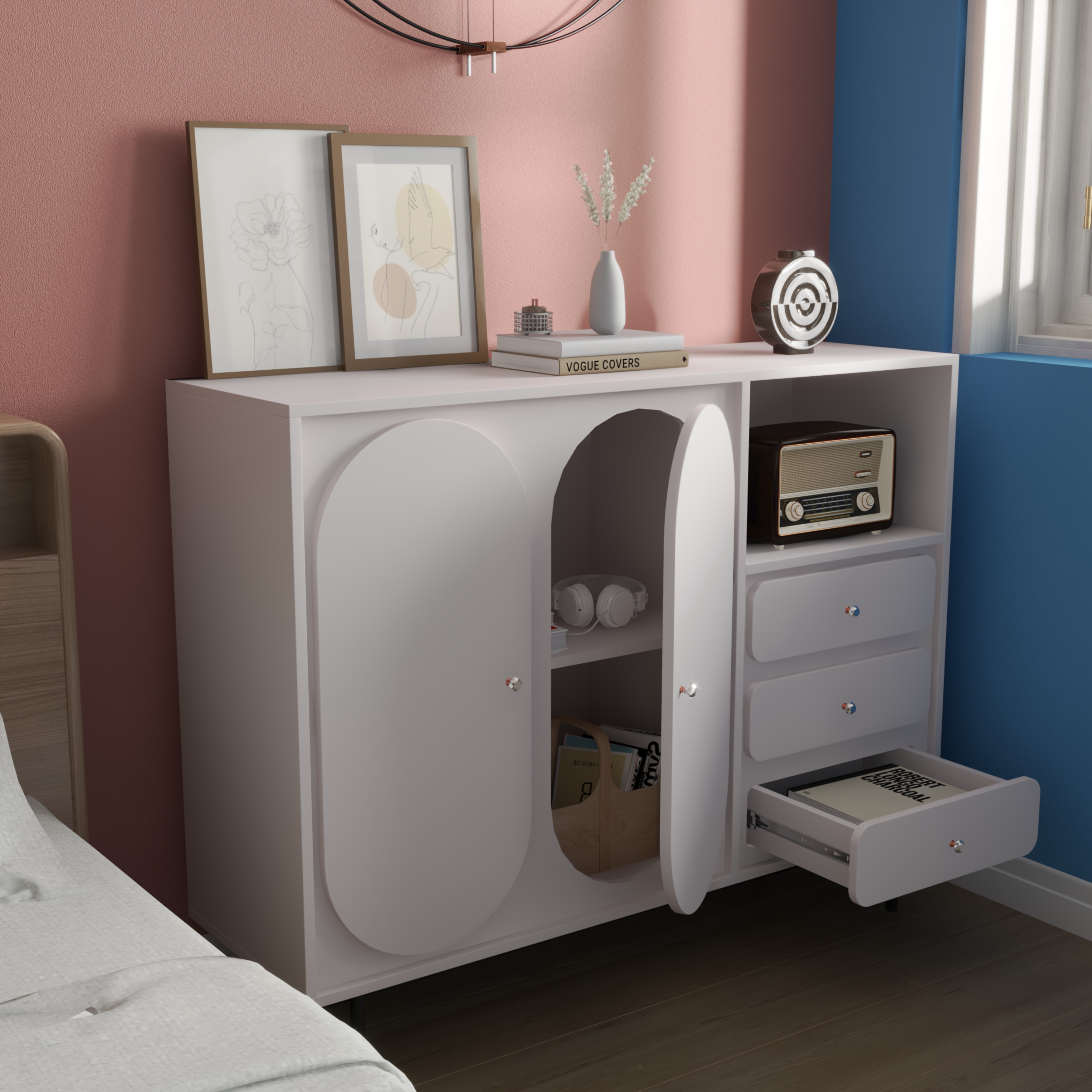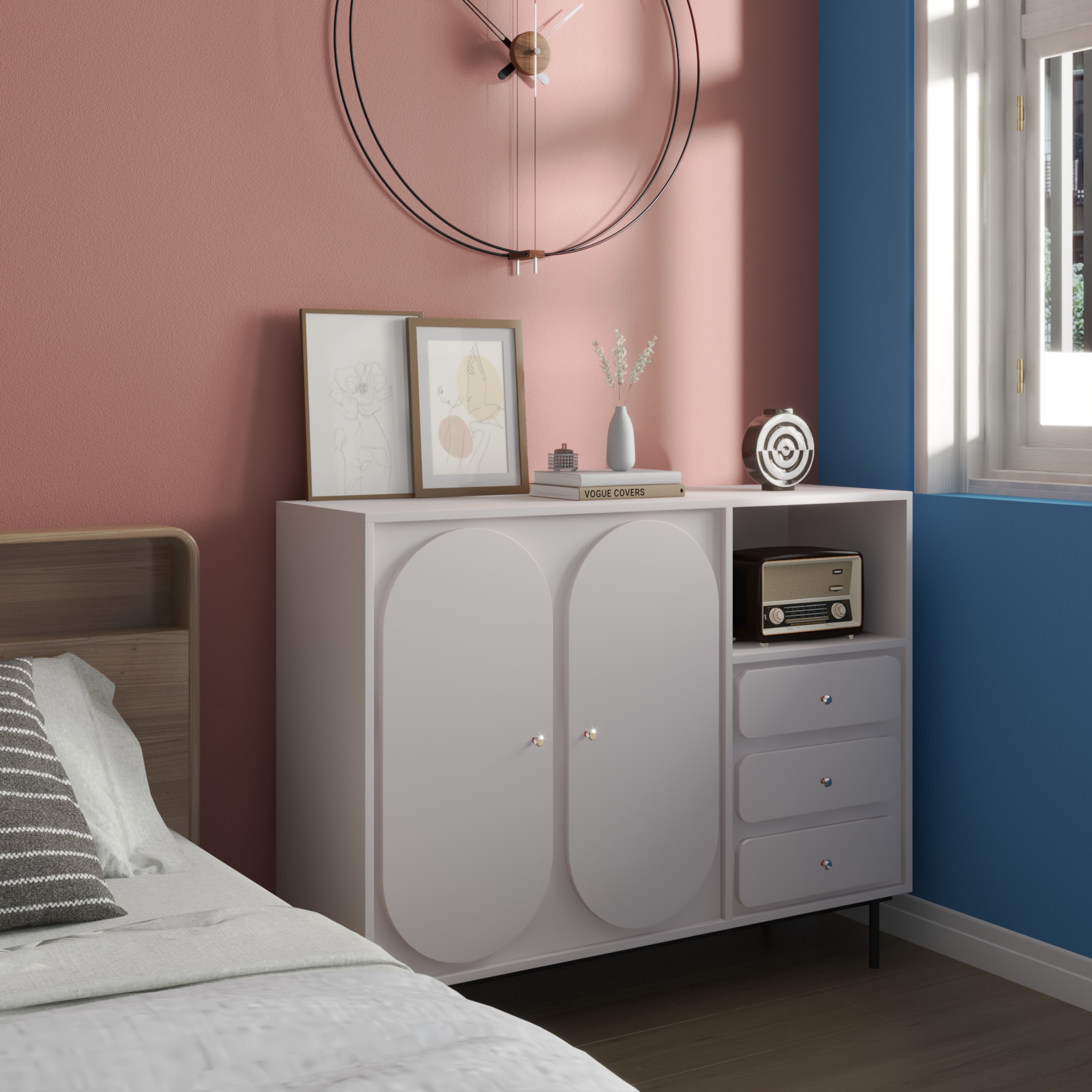 ✨[Happy Home Furniture] SWEETY, Tủ đựng đồ 2 cửa mở 3 ngăn kéo - chân sắt, 128cm x 40cm x 100cm ( DxRxC), TCM_063