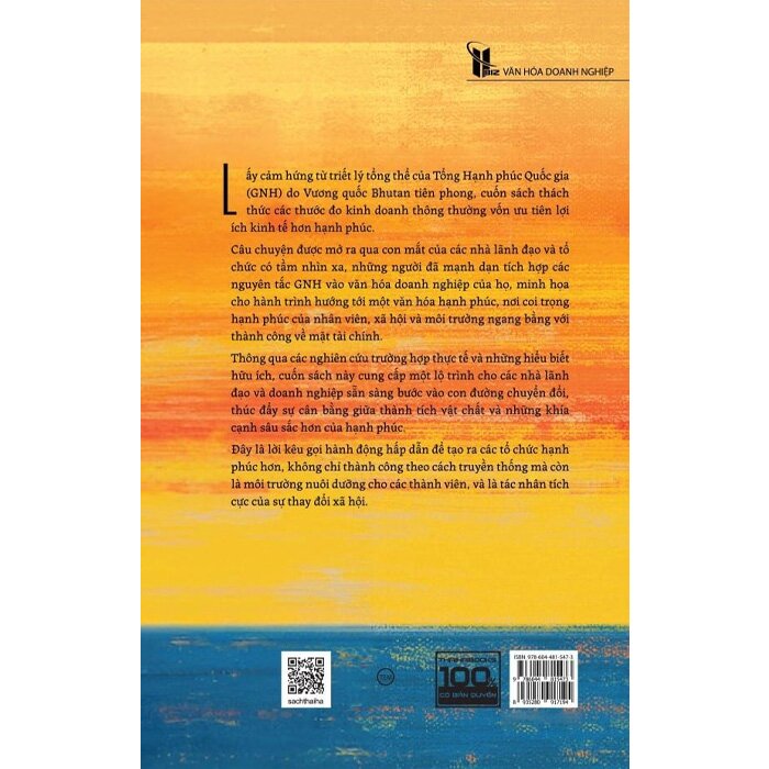 Lấy cảm hứng từ triết lý tổng thể của Tổng Hạnh phúc Quốc gia (GNH) do Vương quốc Bhutan tiên phong, cuốn sách thách thức các thước đo kinh doanh thông thường vốn ưu tiên lợi ích kinh tế hơn hạnh phúc.