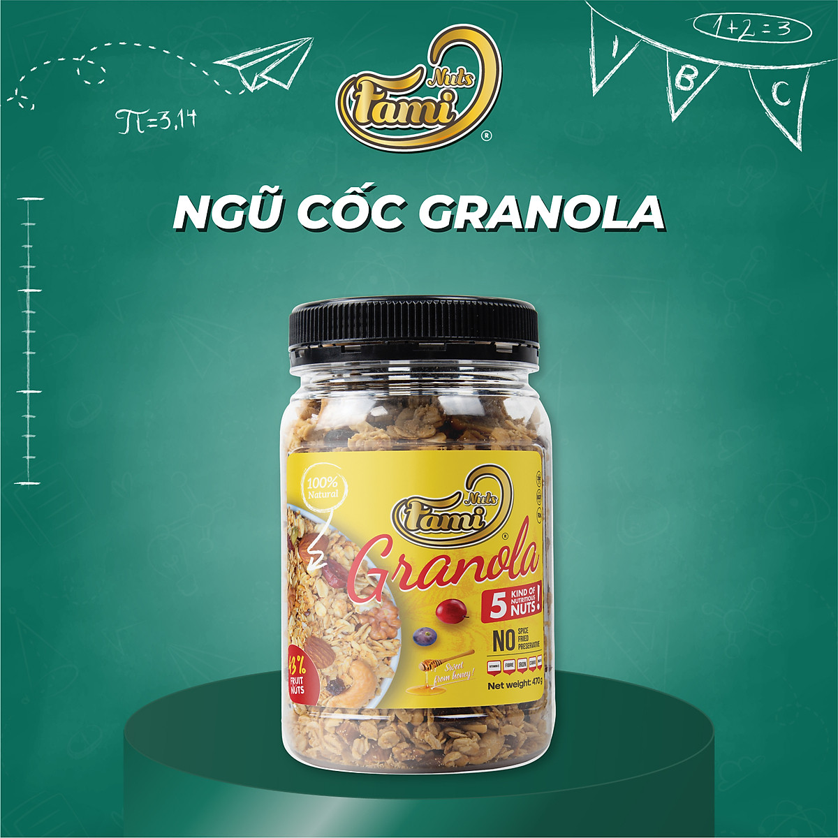 Các loại hạt dinh dưỡng tự nhiên như óc chó, mắc ca, hạnh nhân chứa các chất béo tốt cho cơ thể.Trong 100gr Granola, sẽ có tới có 32.9g chất béo giúp bảo vệ sức khỏe