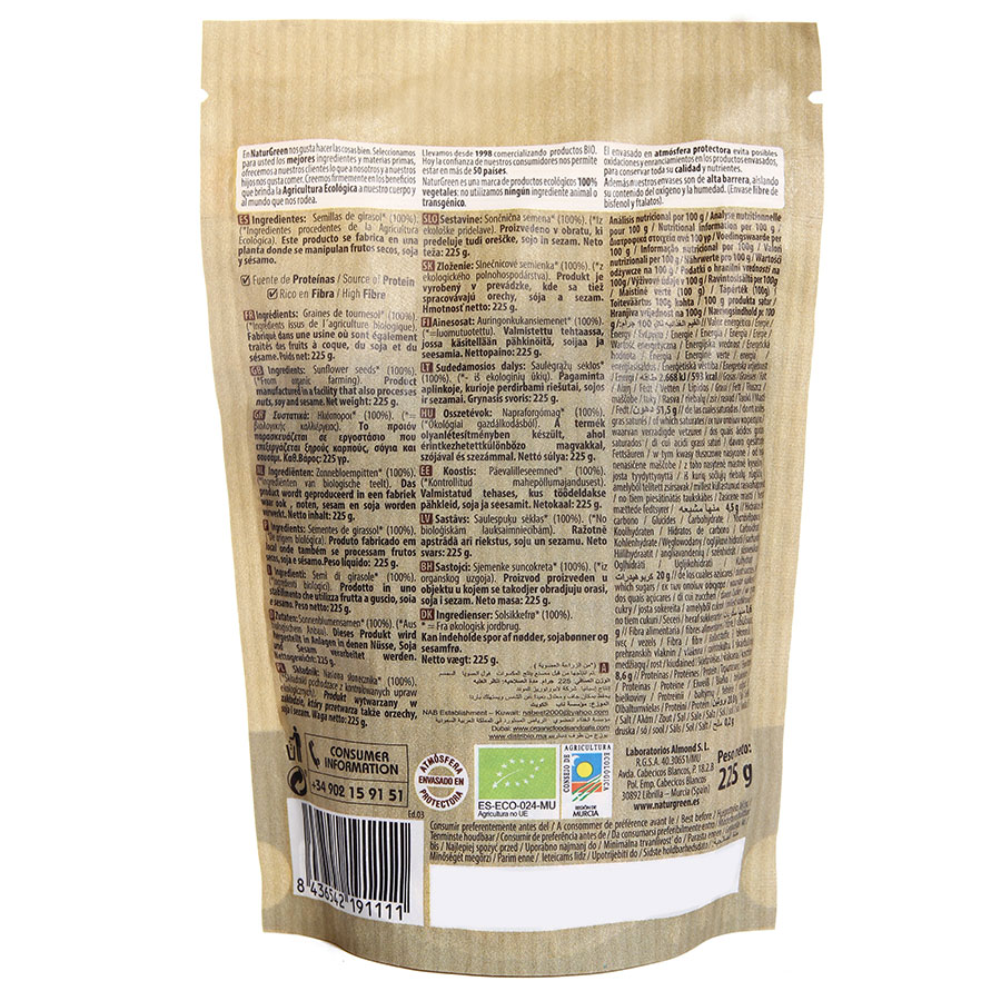 Mua tại Tiktok- Hạt Hướng Dương Hữu Cơ NaturGreen (225g) với thành phần 100% Organic được nhập khẩu từ Tây Ban Nha, an toàn khi sử dụng.