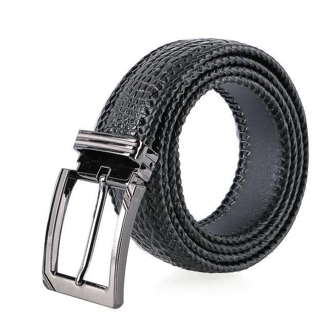 - Tên sản phẩm: HP4276 - Dây nịt nam Huy Hoàng da cá sấu đan viền 3,5P đầu kim màu đen