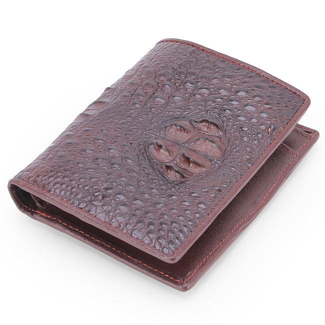 ✨HJ2239 - Bóp nam Huy Hoàng da cá sấu nguyên con kiểu đứng màu nâu đất