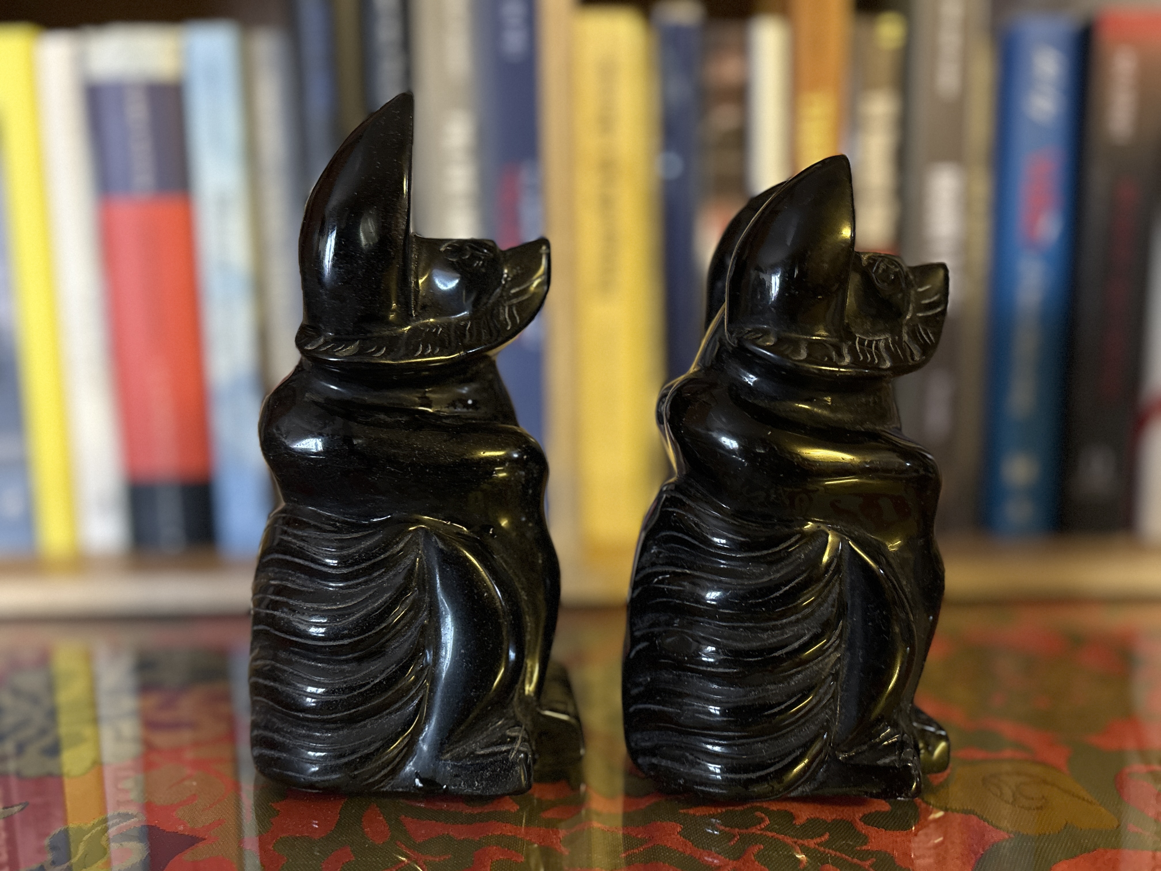 Tượng Hồ ly 9 đuôi chạm khắc tinh sảo bằng đá tự nhiên Obsidian. Kích thước 14cm và 16cm Hồ ly phong thủy - biểu tượng may mắn trong tình yêu Tượng