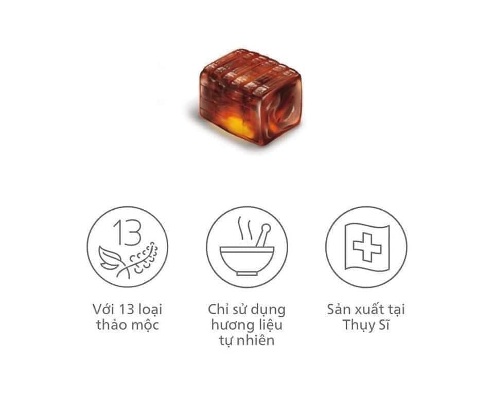 - Phân Loại: Kẹo ngậm đau họng thảo mộc Ricola Schweizer Krauterzucker