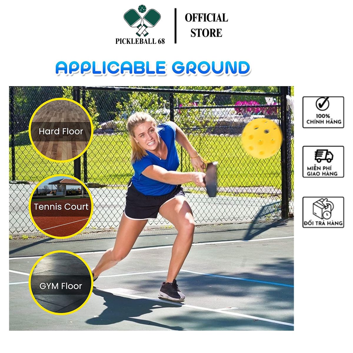 Cam kết sản phẩm: Bóng Pickleball Ngoài Trời 40 Lỗ Chính Hãng Pickleball68 Lựa Chọn Hoàn Hảo Cho Tập Luyện