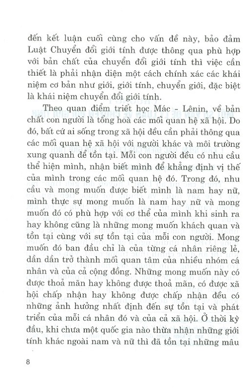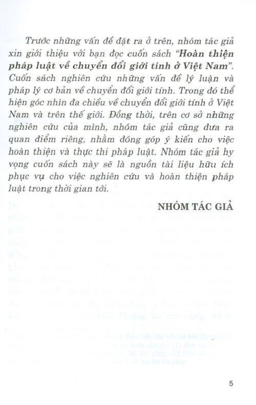 Mua tại TiktokCuốn sách nghiên cứu, đánh giá các quan điểm khác nhau về khái niệm “chuyển đổi giới tính”, đưa ra hướng hoàn thiện khái niệm này, đồng thời chỉ ra một số đặc điểm, xác định bản chất của chuyển đổi giới tính, khẳng định chuyển đổi giới tính là nhu cầu khách quan của con người và là một trong các quyền nhân thân của cá nhân được ghi nhận trong Bộ luật Dân sự năm 2015