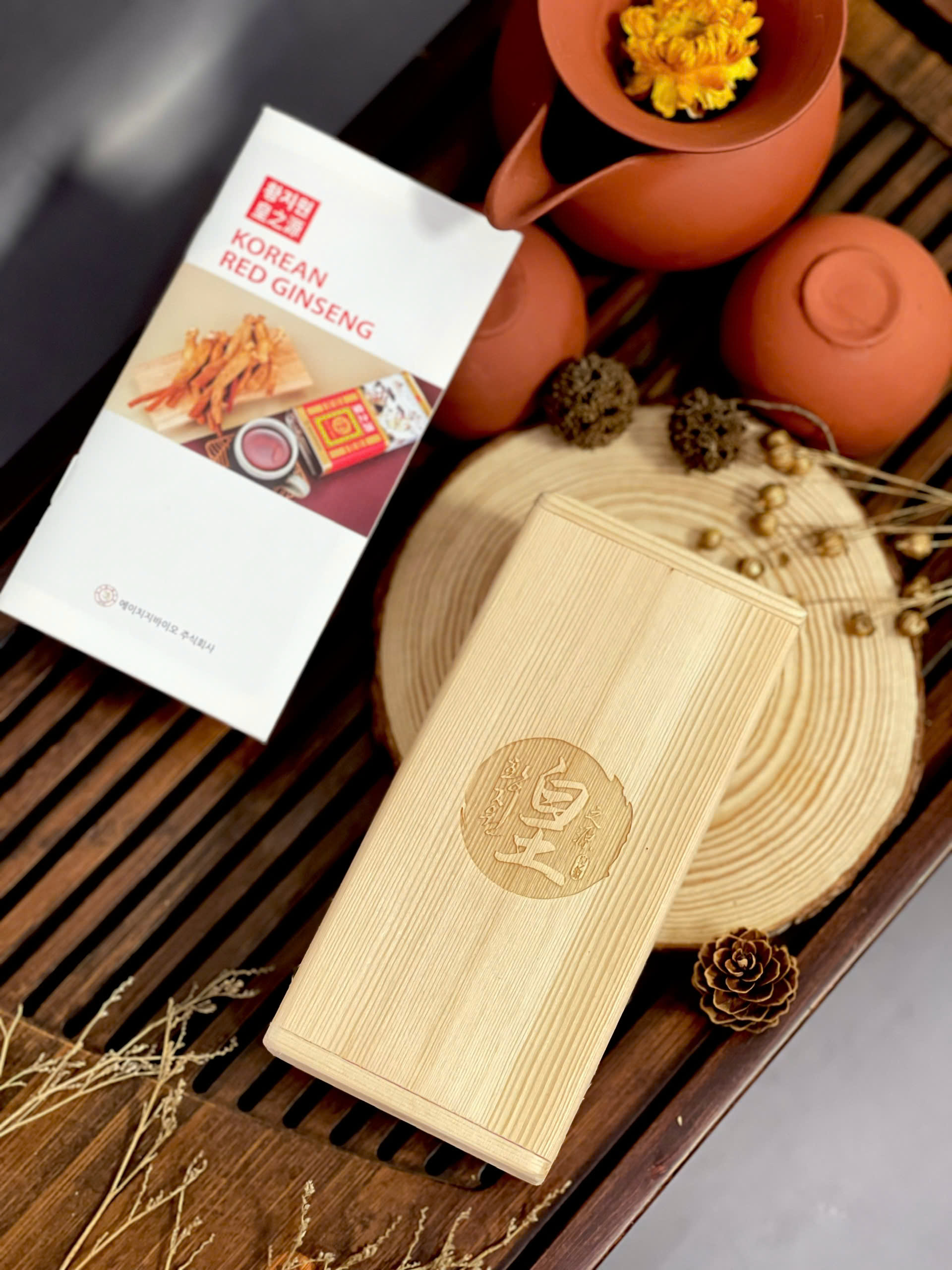 Hồng sâm củ khô hộp thiếc 37.5g Thành phần: - 100% nhân sâm Hàn Quốc qua quá trình hấp sấy thành hồng sâm củ khô nguyên chất, được sấy khô và đóng hộp gỗ bên