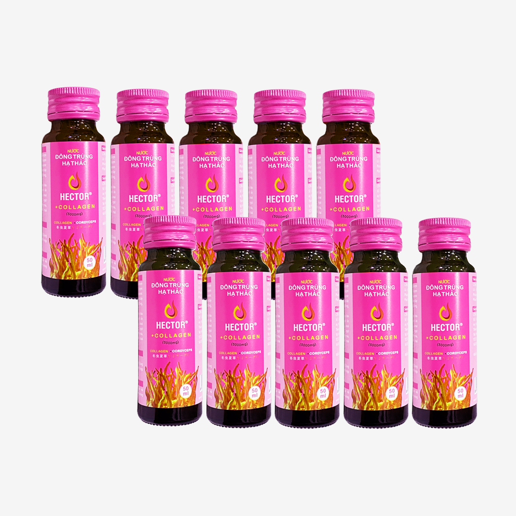 - Nước đông trùng hạ thảo Hector Collagen bổ sung collagen, kích thích cơ thể sản sinh collagen làm đẹp da và ngăn ngừa lão hóa.