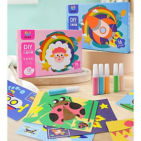 Hộp 16 Tranh Cát DIY 21x14cm An Toàn Cho Bé Kèm 12 Lọ Màu Cát - 10942