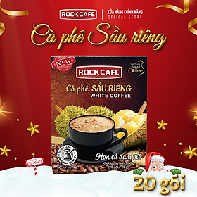 Cà phê sầu riêng - Rockcafe Durian White coffee là sự kết hợp giữa cà phê trắng với vị sầu riêng ngọt bùi. So với vị đắng đậm đà của cà phê đen có thể át đi mùi vị của sầu riêng thì cà phê trắng với vị chua nhẹ và ít vị đắng sẽ giúp bạn có thể cảm nhận được vị cà phê trong khi vẫn có thể nếm được vị ngọt bùi đặc trưng của sầu riêng.