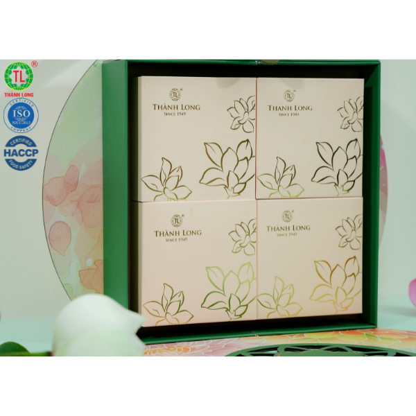 Hộp bánh trung thu 4 bánh chay 220g - Thành Long - Combo chay trăng/ chay 4 880g - Tặng 1 hộp trà - Combo chay trăng: gồm 2 bánh nhân thập cẩm jambon xá