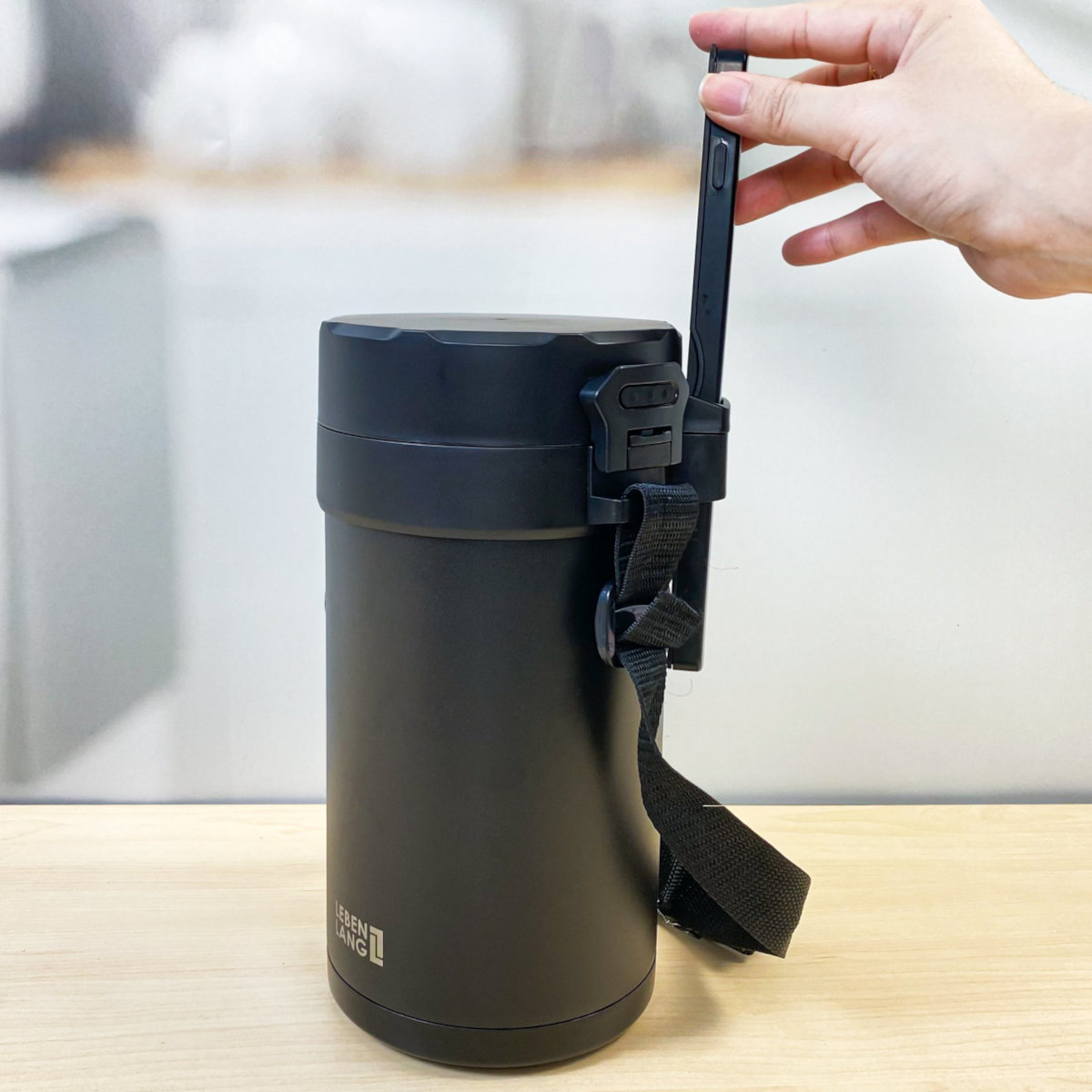 - Phần thân cà men được cấu tạo bởi 5 lớp cách nhiệt, nguyên lý cách nhiệt chân không giúp cà men giữ nhiệt lâu. Giữ ấm lên đến 6 - 8 tiếng