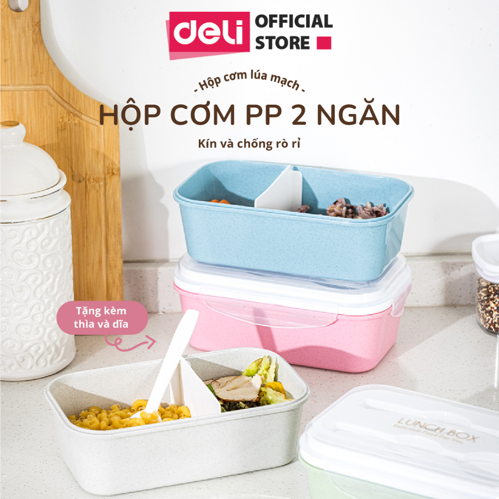 ✨Hộp Cơm Trưa Văn Phòng Lúa Mạch Deli - 2 Ngăn Linh Hoạt Có Thể Sử Dụng Trong Lò Vi Sóng Chống Tràn An Toàn, Hộp Đựng Cơm Tặng Kèm Thìa Dĩa