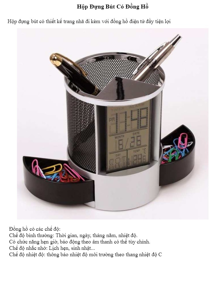 - Hộp đựng bút có đồng hồ, lịch kỹ thuật số đa năng - hàng chính hãng - - Hộp đựng bút, dụng cụ văn phòng trang nhã lịch lãm. - Chế độ bình