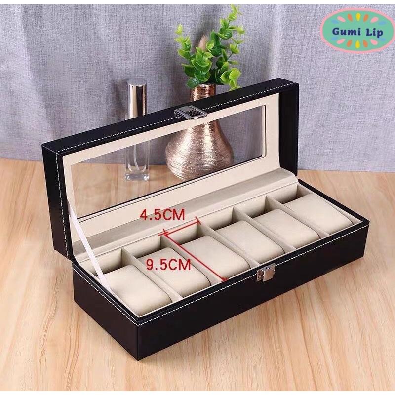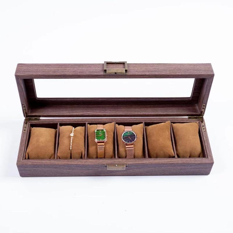 Hộp Đựng Đồng Hồ 6 Ngăn Vỏ Da Màu Vân Gỗ - Mã DH6DN