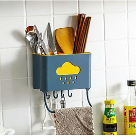 Hộp đựng đũa muỗng treo tường hình đám mây kèm móc treo khăn dụng cụ bếp tiện lợi