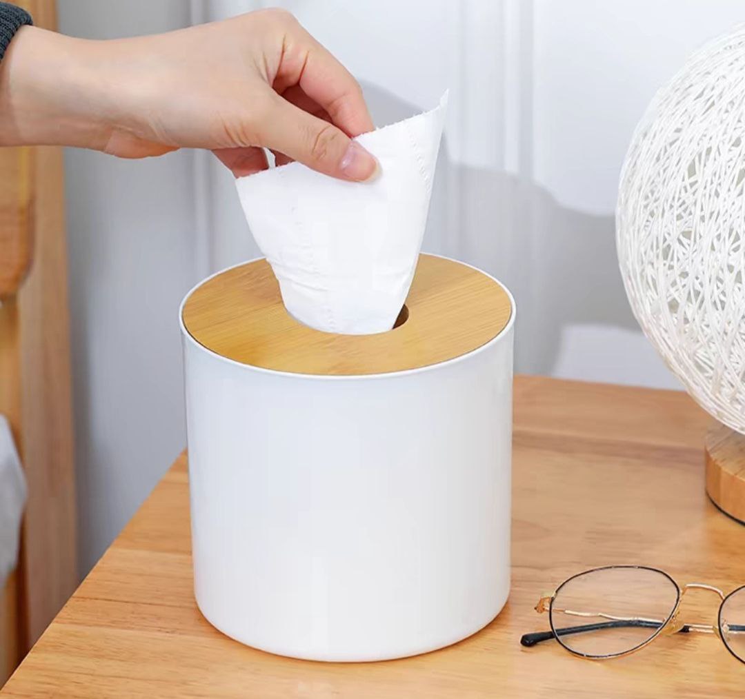✨Hộp đựng khăn giấy phong cách Nhật Bản nắp gỗ basic hình trụ tròn