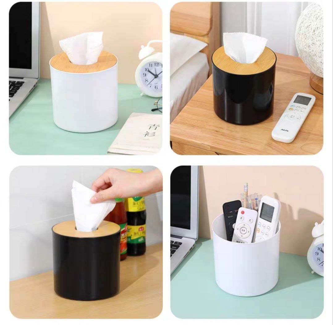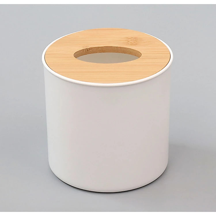 Mua tại TiktokHộp đựng khăn giấy phong cách Nhật Bản nắp gỗ basic hình trụ tròn