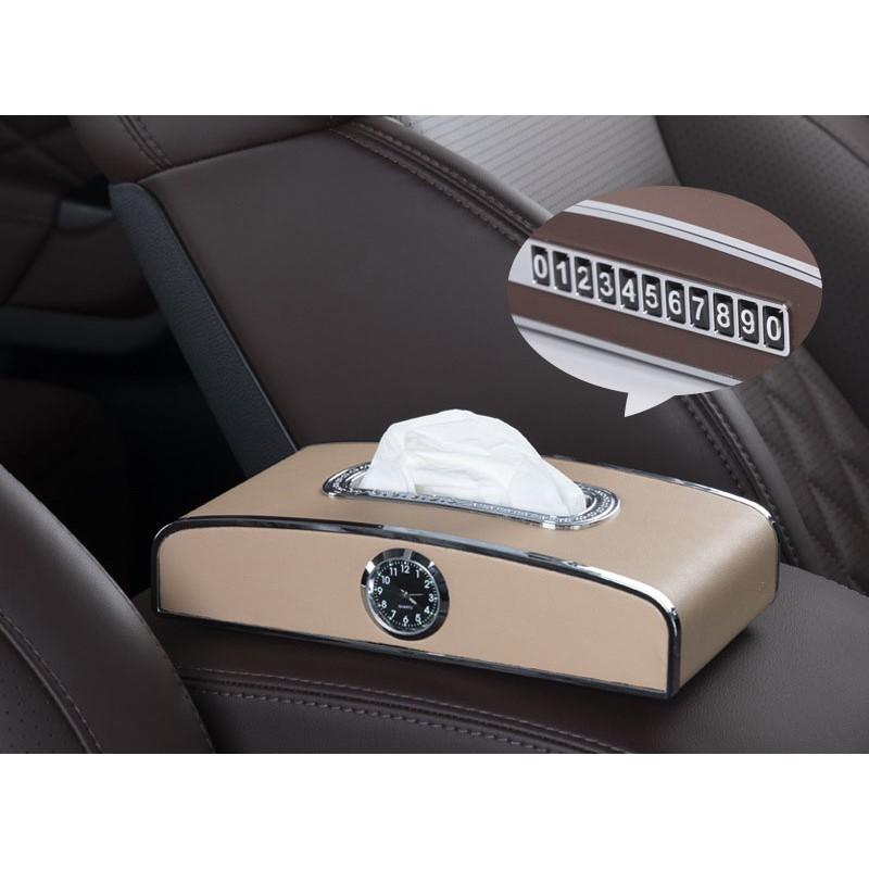 ✨Hộp Đựng Khăn Giấy Trên Ô Tô Có Đồng Hồ Và Bảng Số Điện Thoại Cao Cấp